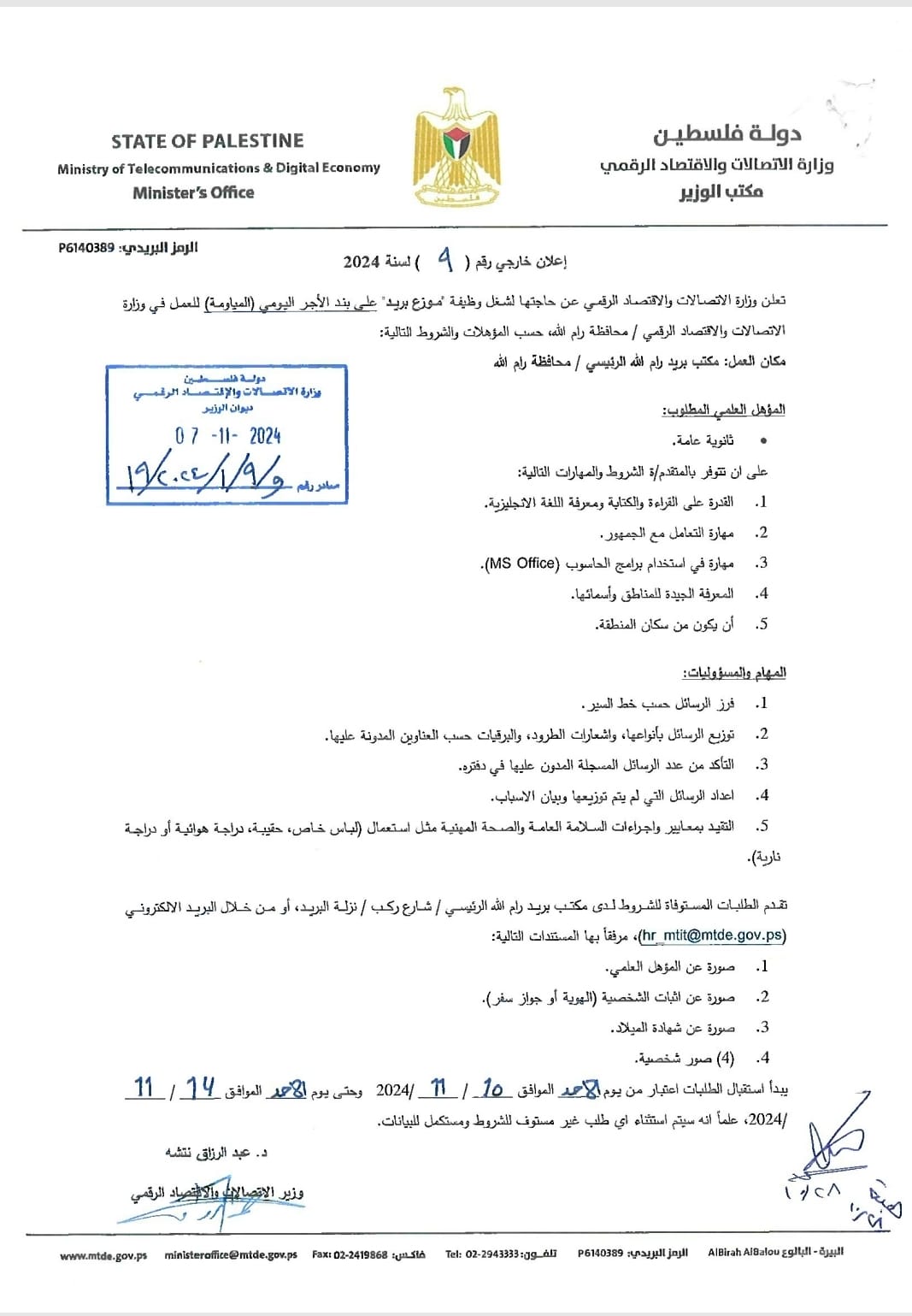 الموقع الرسمي لوزارة الإتصالات والاقتصاد الرقمي لدولة فلسطين