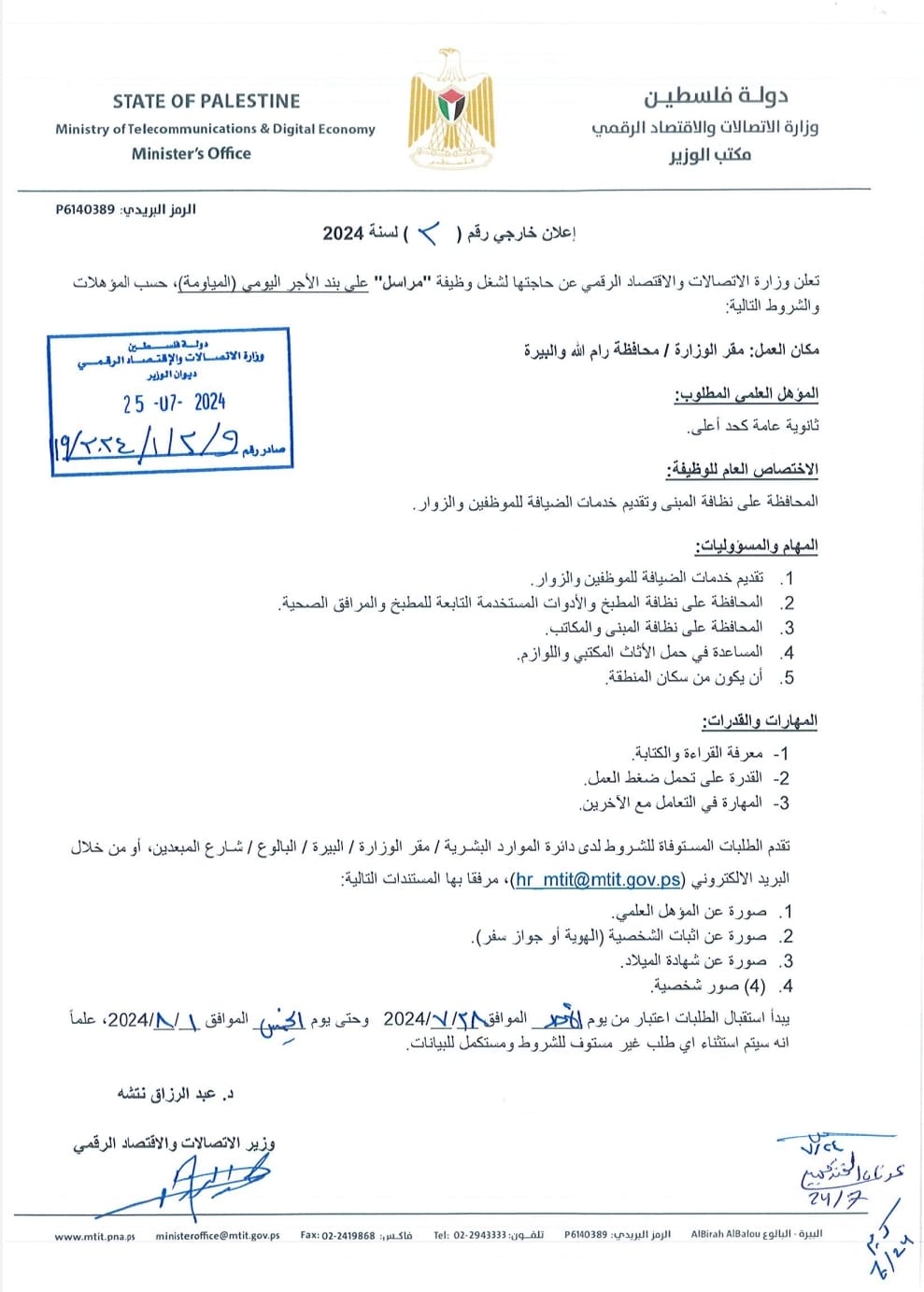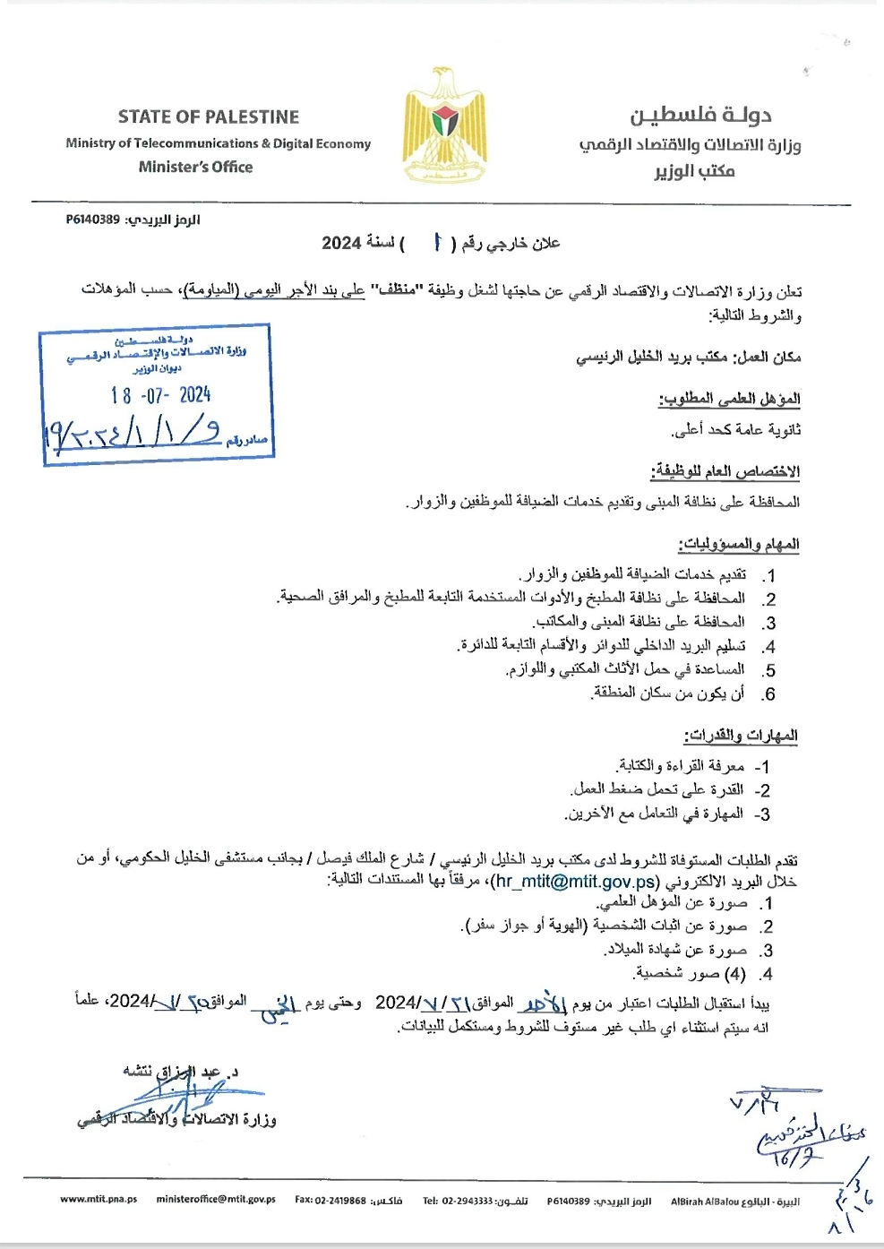 الموقع الرسمي لوزارة الإتصالات والاقتصاد الرقمي لدولة فلسطين